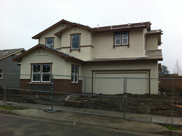 We finally had a bit of a break from the storms... hopefully it stays this way for a week so the stucco can dry cure and get painted. I really want to know what color my house is going to be!!!! Gray, beige, dukey yellow? (HOPE NOT!!!!!!!), brown? multi-color. I'm hoping gray, but I it's looking beige to me...